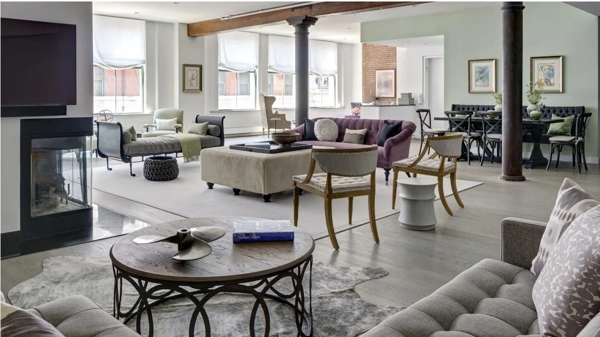 This large, open plan was broken up into four different seating areas, which utilizes the space well and creates zones for activities. Eaton used coordinating furniture to help create flow and repetition but each space is still distinctly it’s own.